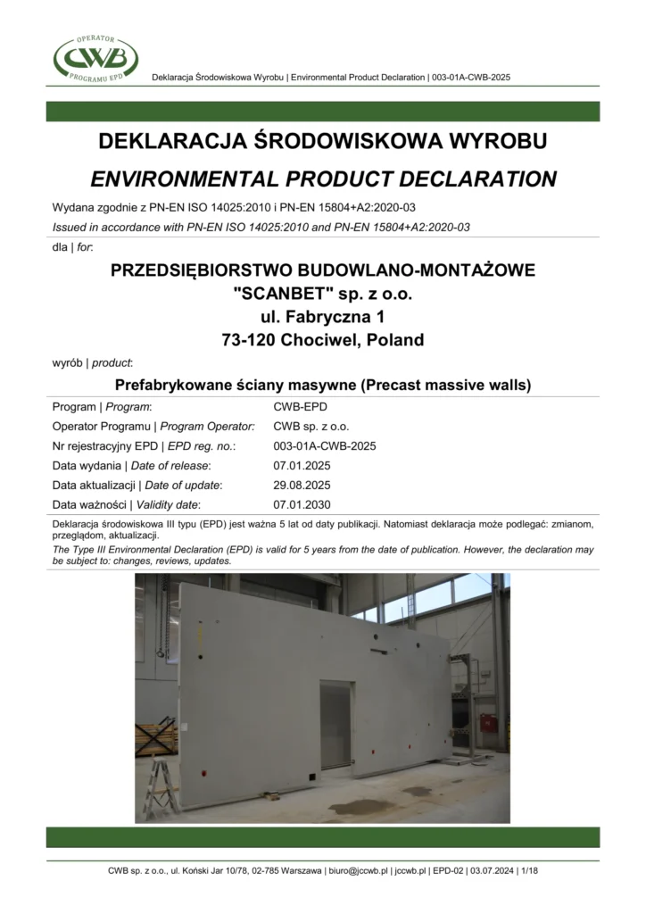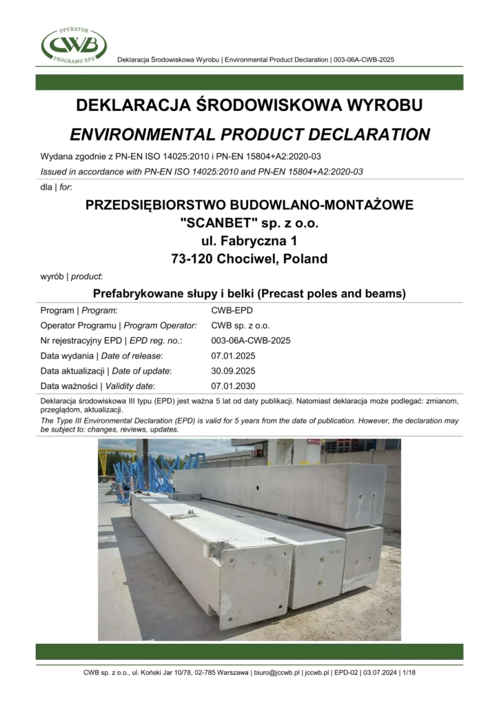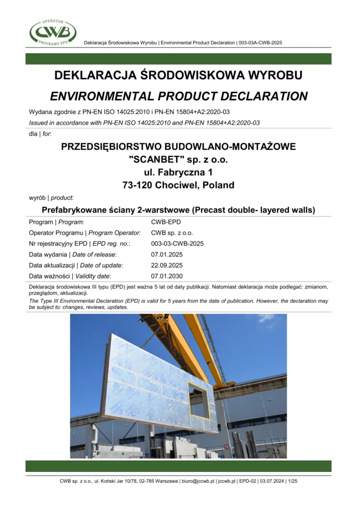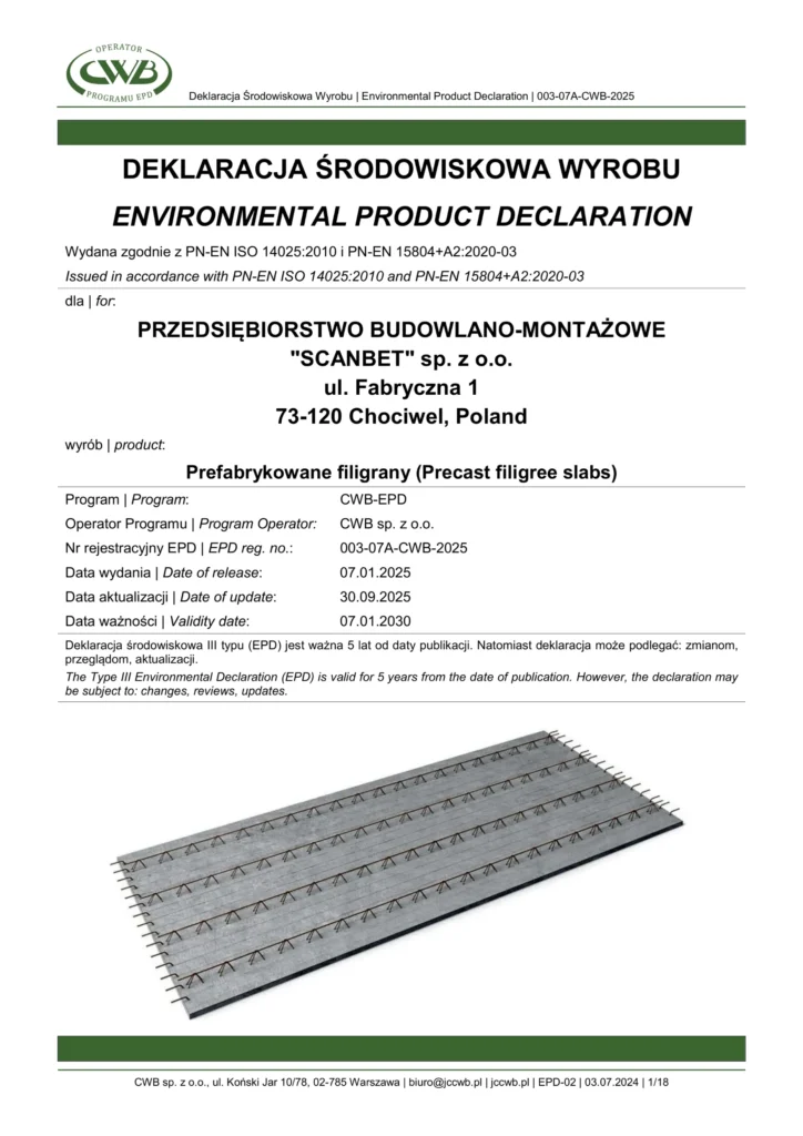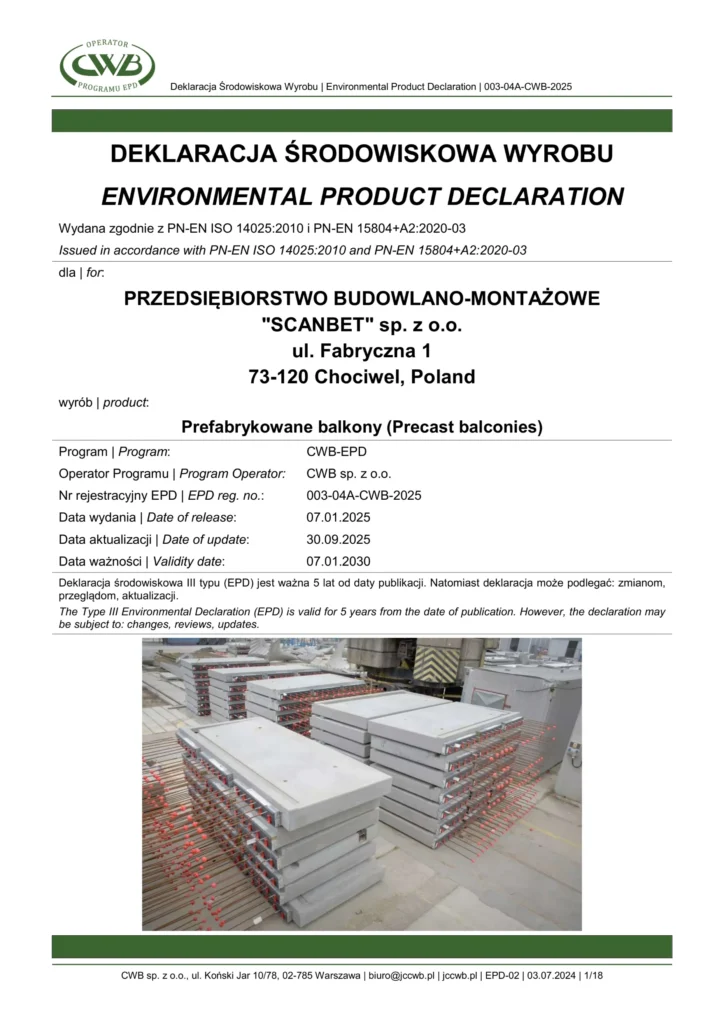 Niezależnie weryfikowane i certyfikowane dokumenty, które dostarczają przejrzystych i wiarygodnych informacji o wpływie produktu na środowisko. Opierają się na analizie cyklu życia produktu (Life Cycle Assessment, LCA), obejmującej wszystkie etapy – od pozyskania surowców, przez produkcję i użytkowanie, aż po utylizację lub recykling.